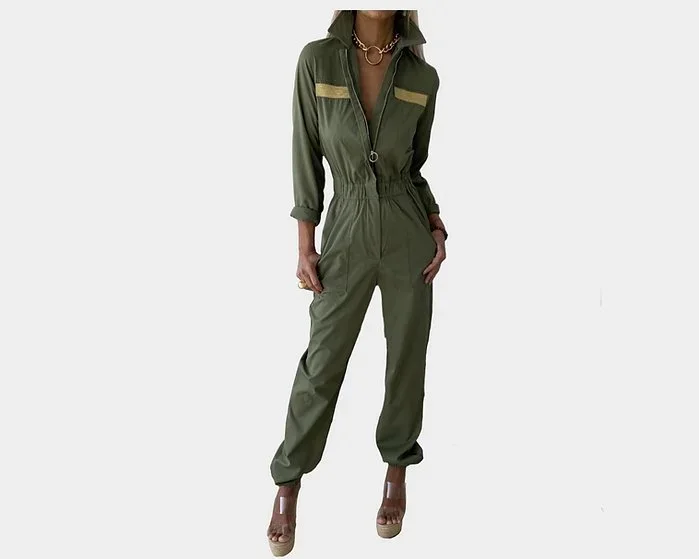 7 Olive Green Flip Golden Pockets Jumpsuit - The Monaco